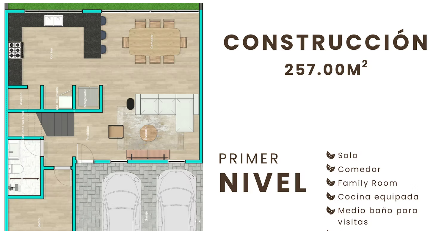257 m² / 3 recámaras / 2.5 baños + Medio baño en Roof garden / 2 estacionamientos