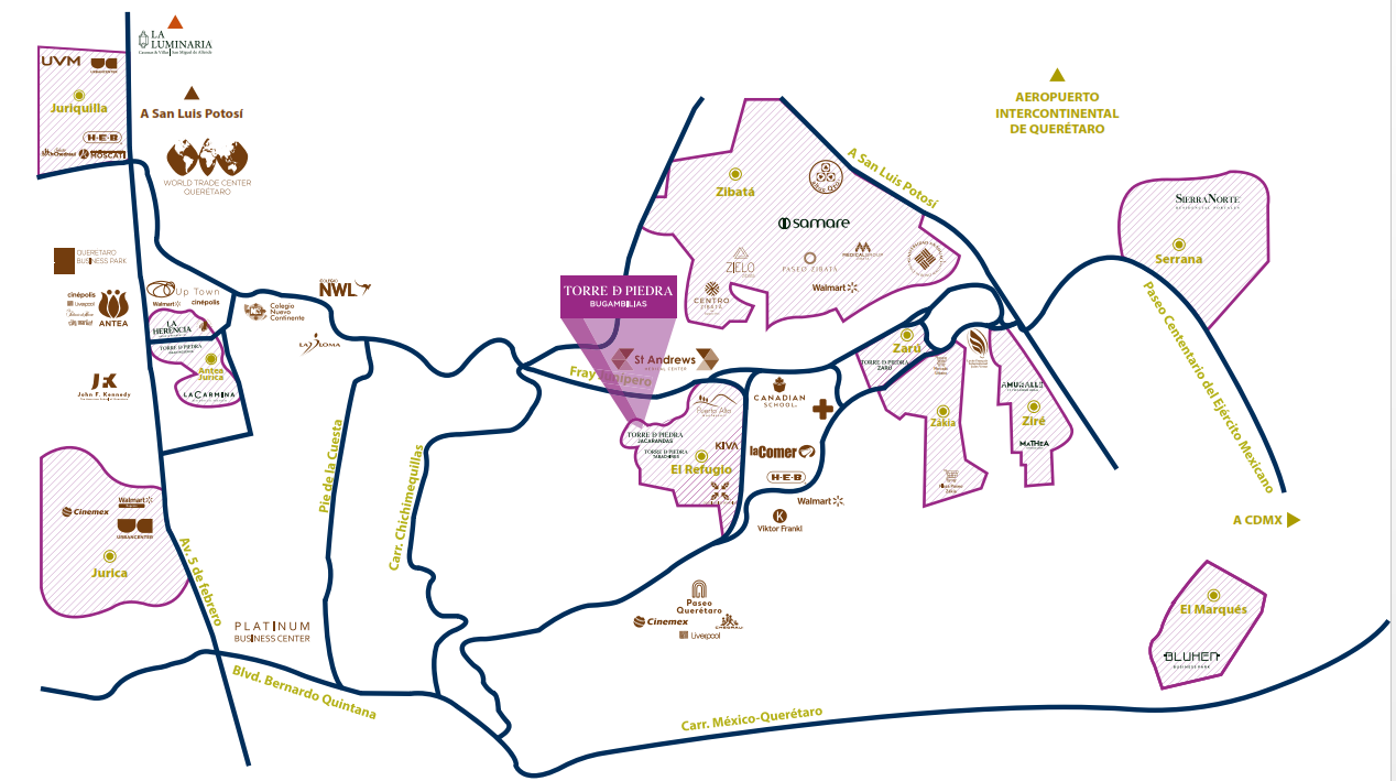 Torre de Piedra Bugambilias es un desarrollo que se encuentra en una de las zonas más modernas de Querétaro como lo es El Refugio, el cual está pensado para ser una «ciudad planeada».