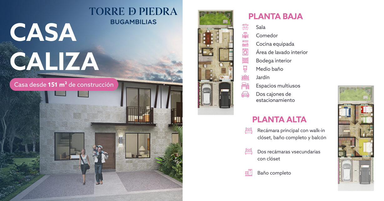 Casa Caliza Desde 151m| 3 recámaras | 2.5 baños | 2 Estacionamientos |