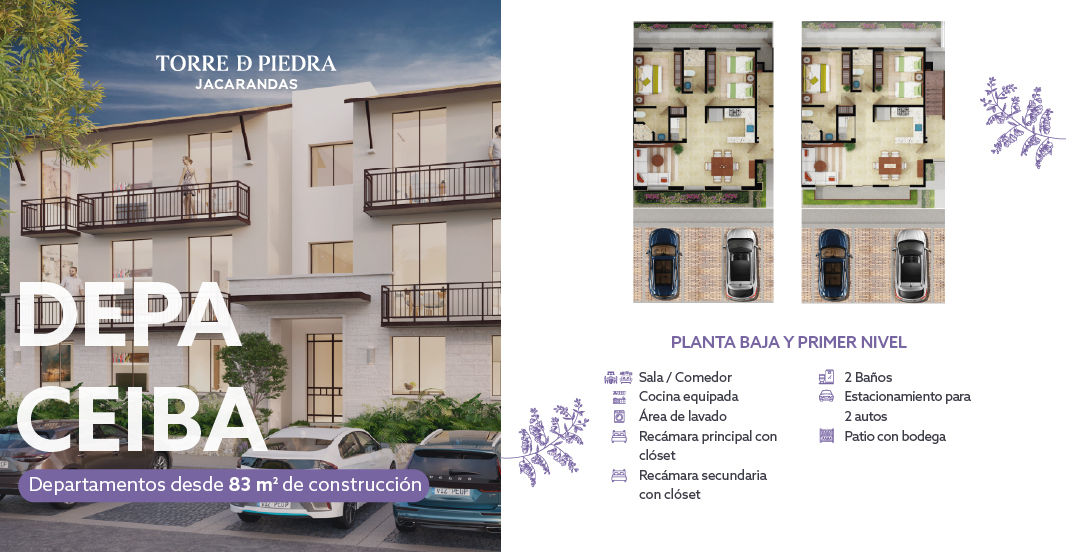 Depto Ceiba P. Alta Desde 85m| 2 recámaras | 2 baños | 2 Estacionamientos | Desde: $2,720,848 MXN
