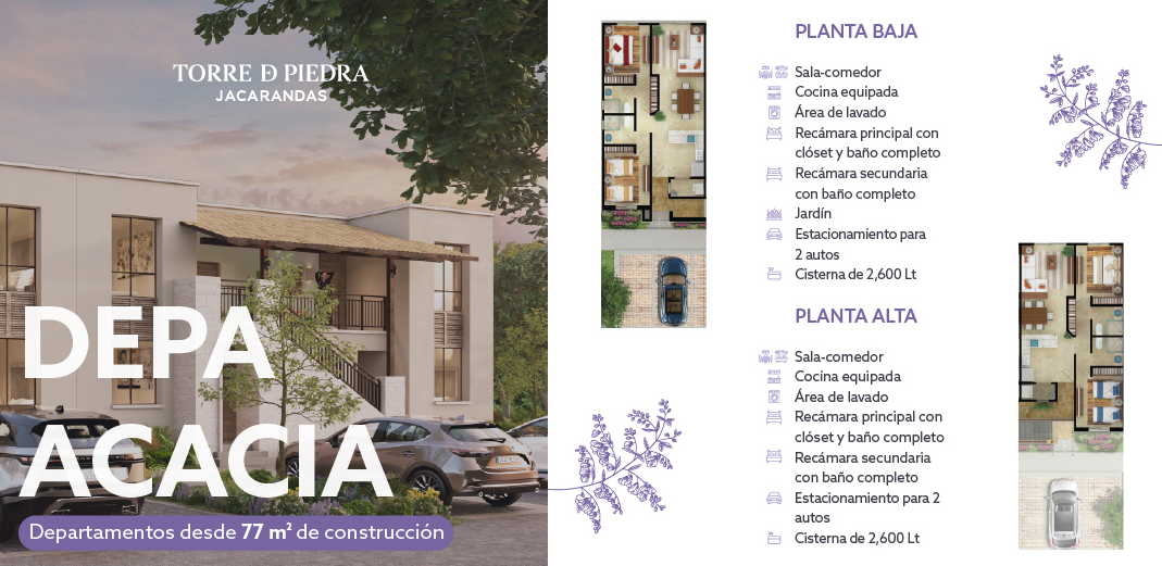 Depto Acacia P. Alta Desde 78m| 2 recámaras | 2 baños | 2 Estacionamientos | Desde: $2,910,185 MXN