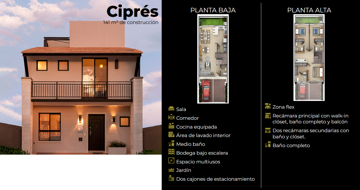 Casa Ciprés Desde 141m| 3 recámaras | 3.5 baños | 2 Estacionamientos | Desde: $3,762,887 MXN