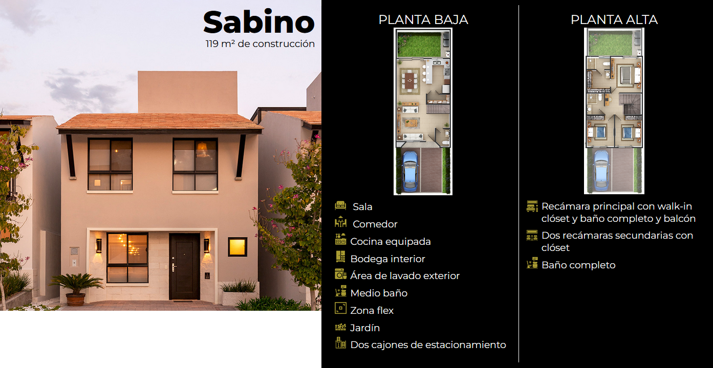 Casa Sabino Desde 119m| 3 recámaras | 2.5 baños | 2 Estacionamientos | Desde: $3,226,000 MXN