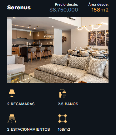 Serenus Desde 158m2 | 2 recámaras | 2.5 baños | Bodega | 2 Estacionamientos | Desde: $8,750,000 MXN