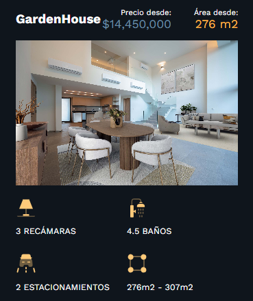Garden House Desde 276m2 | 3 recámaras | 4.5 baños | Bodega | 2 Estacionamientos | Desde: $10,200,000 MXN