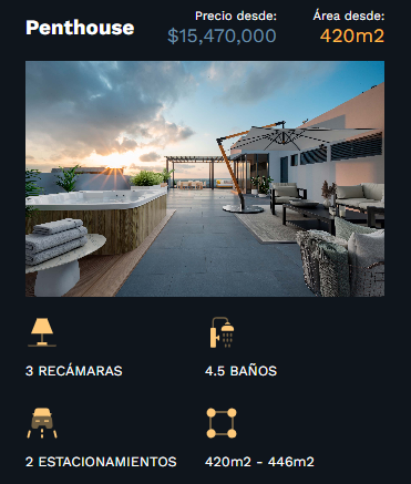 Penthouse Desde 420m2 | 3 recámaras | 4.5 baños | Bodega | 2 Estacionamientos | Desde: $15,470,000 MXN