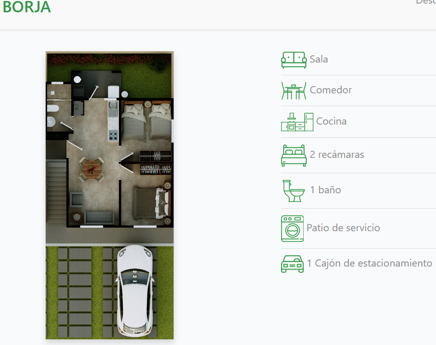 - Borja Planta Baja | Desde 43.48m2 | 2 recámaras | 1 baño | 1 Estacionamiento