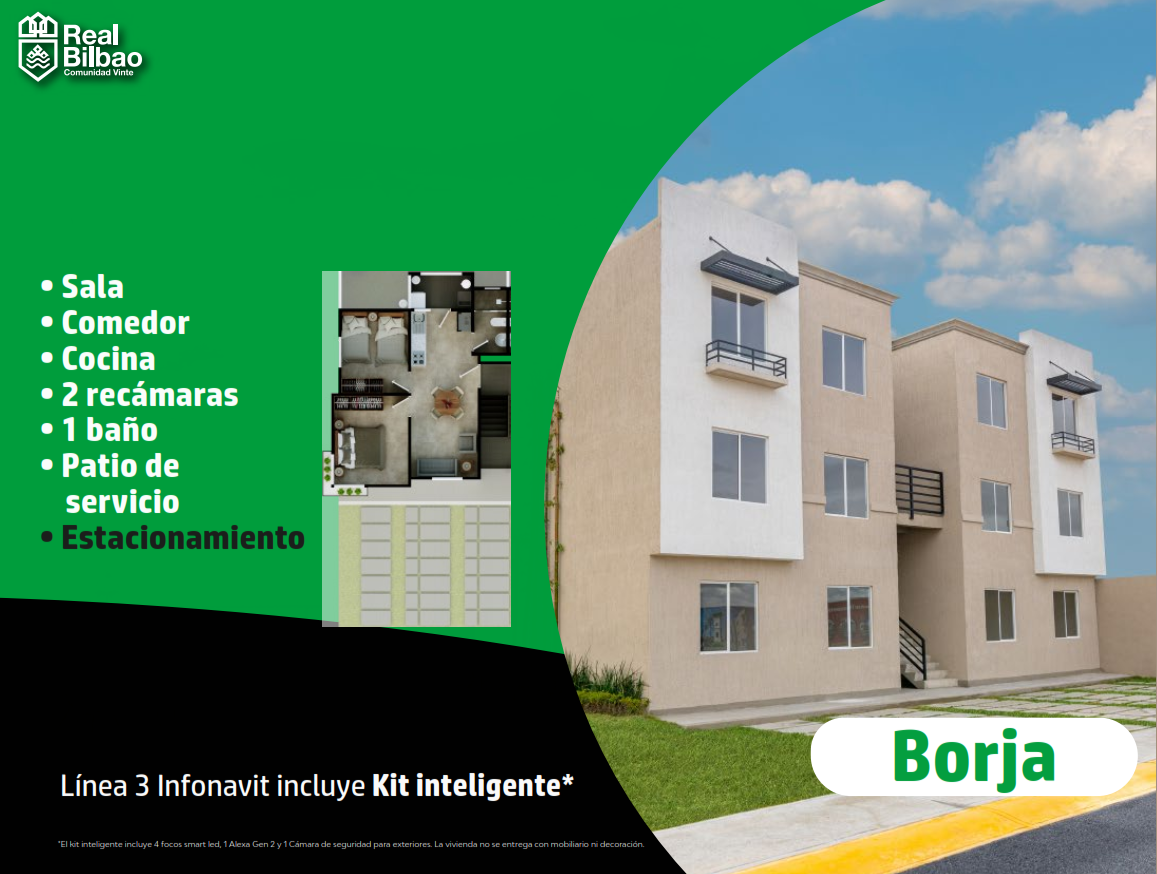 - Borja | Desde 48.11m2 | 2 recámaras | 1 baño | 1 Estacionamiento