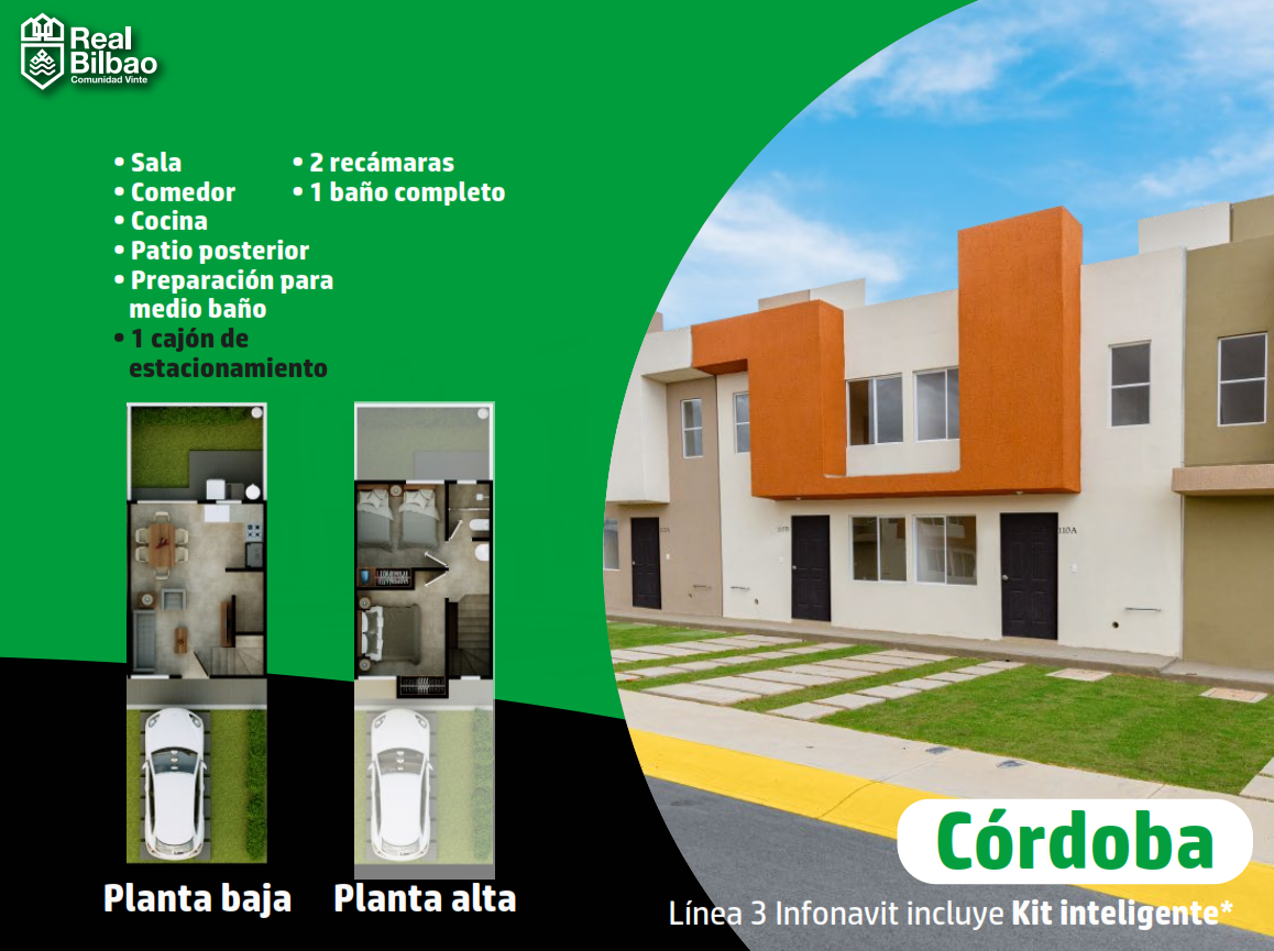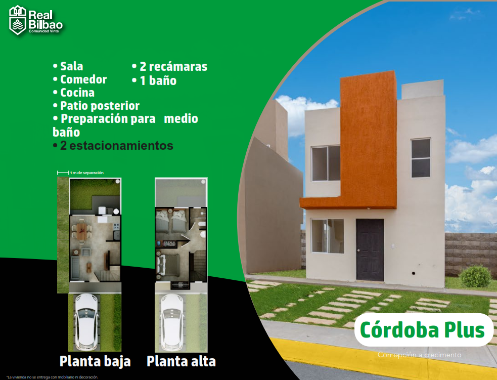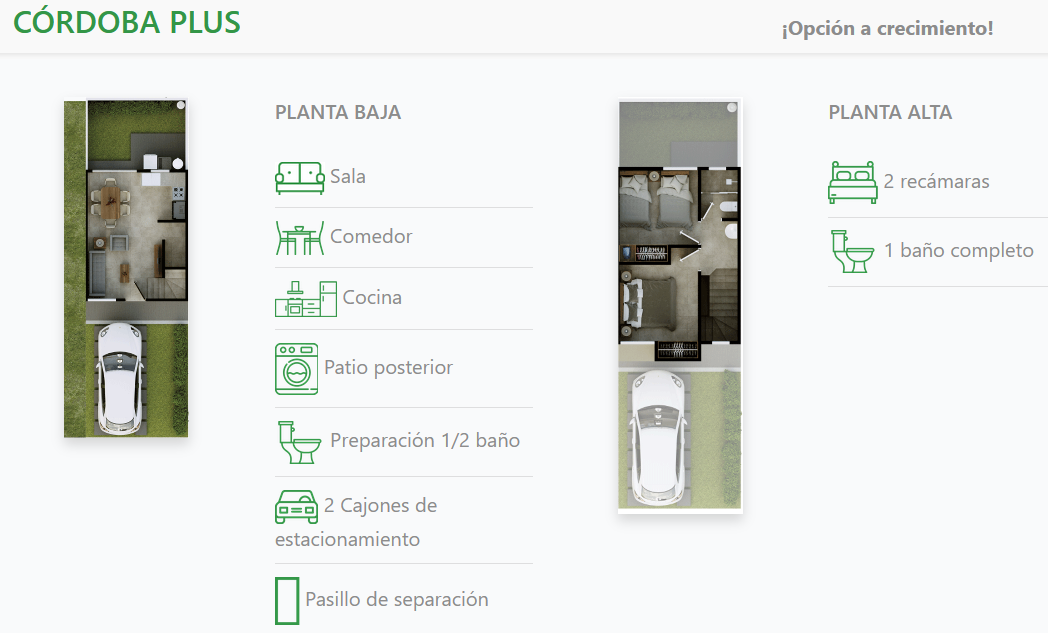 • Córdoba Plus 57.3m| 2 recámaras | 1 baño | 2 Estacionamientos | Terreno extra | Desde $1,560,000 MXN*
