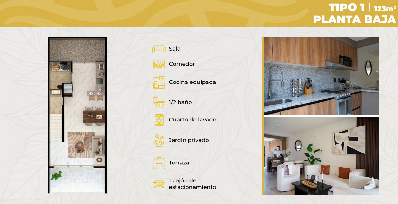 122 m² / 3 recámaras / 2.5 baños / 1 estacionamiento