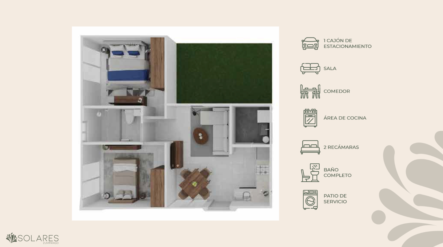 - Rubí 42.35m2 | 2 recámaras | 1 baño | 1 Estacionamiento | Desde $687,000 MXN* | Mensualidades desde $5,720 MXN | Promoción descuento hasta $25,000 MXN* | Aprovecha precio de preventa.