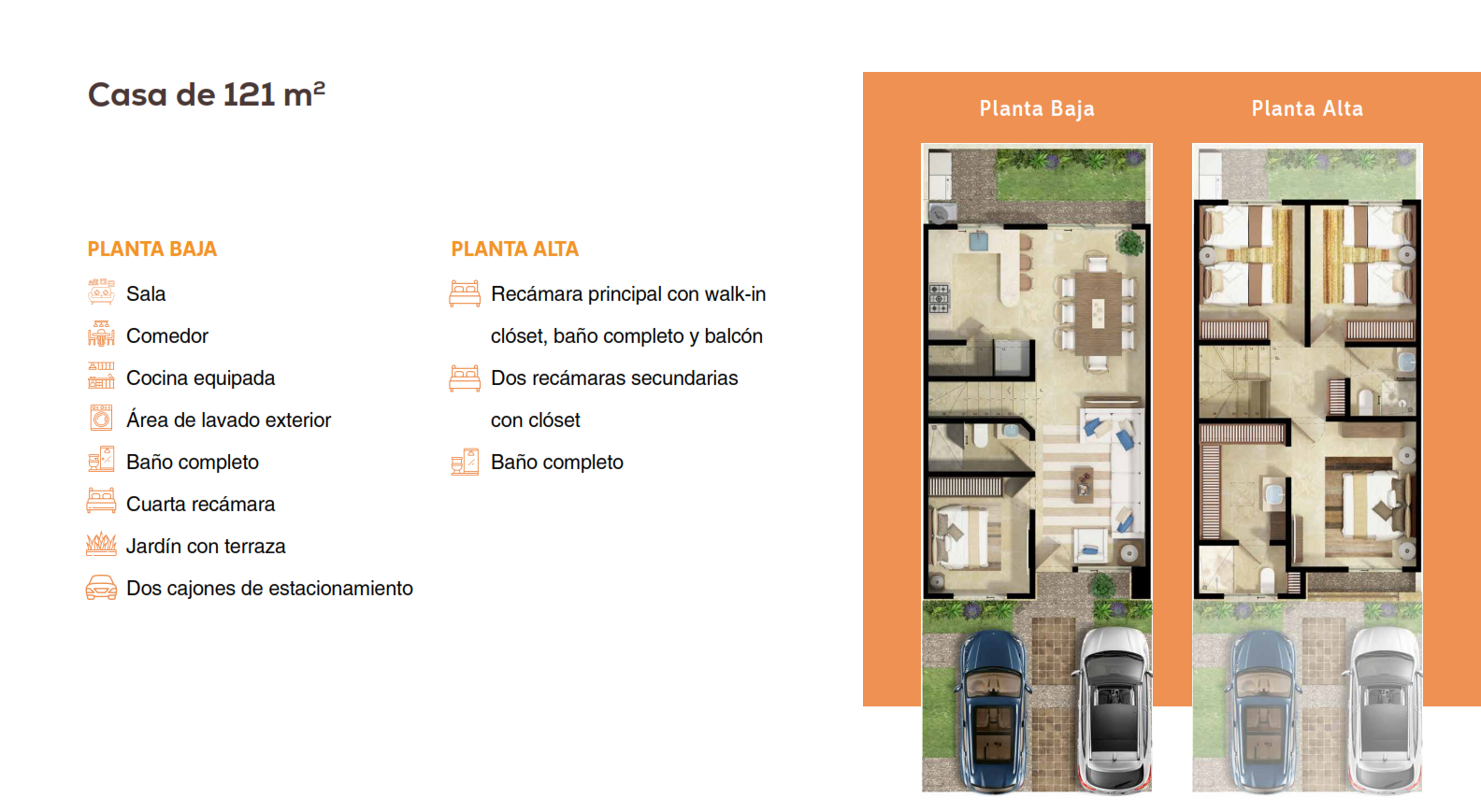 Casa Fraga Desde 110m2 | 3 recámaras | 2.5 baños | 2 Estacionamientos | Desde: $2,685,000 MXN