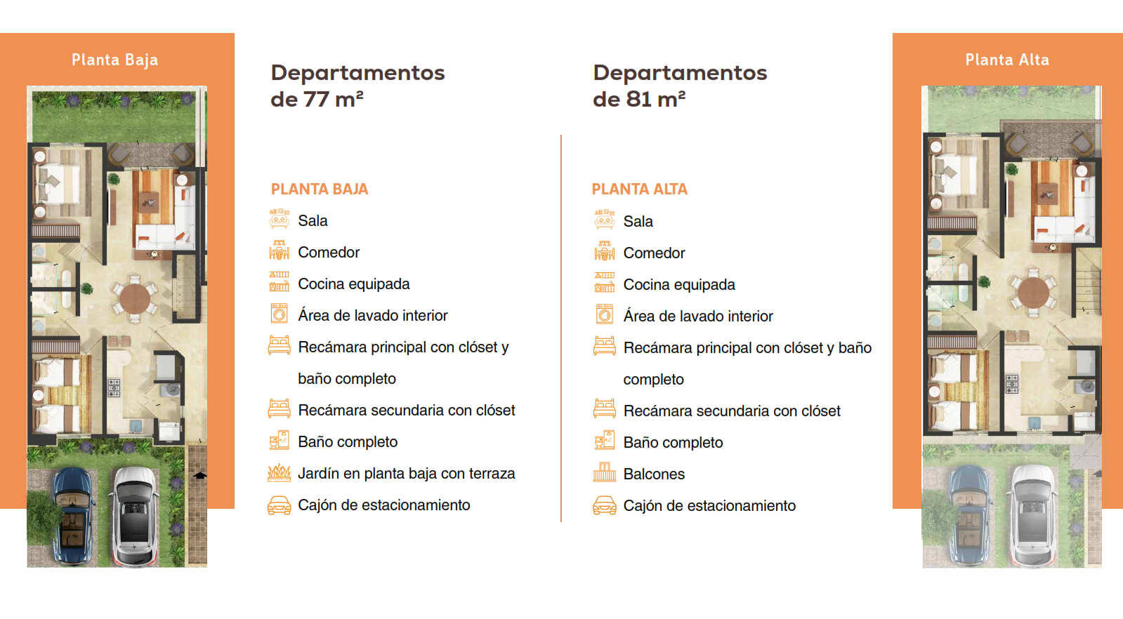 Depto Maella Planta Alta Desde 81m2 | 2 recámaras | 2 baños | 1 Estacionamiento | Desde: $2,164,948 MXN